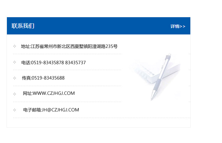 地址:常州市新北區友邦商務大廈1幢16、17層  電話:0519-85101652  傳真:0519-85112595  郵編:213022  網址:www_jsqcwz_com.dgchxtx.com  郵箱:xiajifengaa@163.com